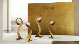Moni is a series of floor lamps inspired by the word sprout. Bud is a small part of a plant, that develops into a flower or leaf. The main characteristic of the bud is the organic shape it takes once it is born. Moni reflects these sinuous and natural shapes in its structure. There is Moni small which represents the bud that is yet to be born and Moni large that has just been born, then there is Moni which is a combination of the two lamps.